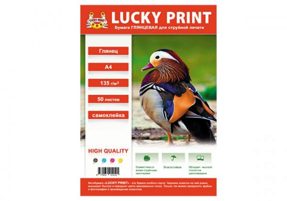 Глянцевая фотобумага Lucky Print (A4, 135г/м2), 50 листов, самоклейка